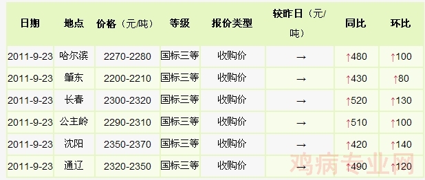 9月23日东北内蒙国标三等玉米价格