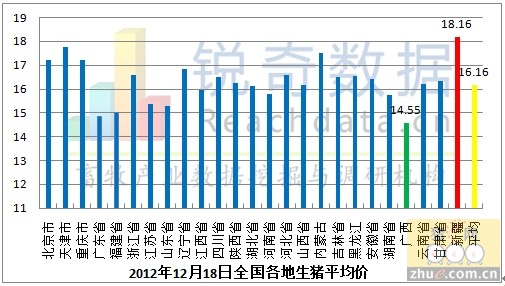 12月18日生猪市场行情与昨日震荡上扬,全国生猪价格最高地区为新疆,生猪平均价为18.16元/千克,最低地区为广西省,生猪平均价为14.55元/千克,两地区差异非常明显,全国大部分地区生猪行情震荡调整。