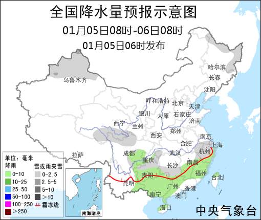 中央气象台预计,未来三天,西南地区东部、江汉南部、江南大部、华南中西部、青藏高原东部等地将持续雨雪天气,其中,5日,贵州中部、湖南西南部、江西中部偏西等地的部分地区有冻雨。新疆北部有降雪天气,降雪量以小到中雪为主。
