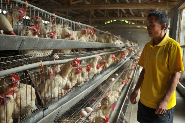 8月24日,李胜奎在饲养蛋鸡。