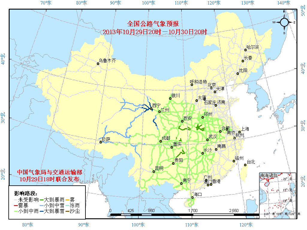 10月29日:全国主要公路气象预报