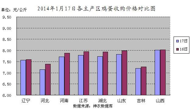 2014年1月17日全国鸡蛋价格行情:继续回落