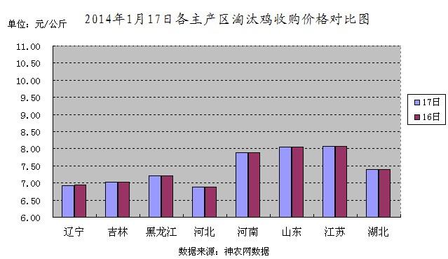 2014年1月17日全国淘汰鸡价格行情:小幅回落
