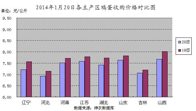 2014年1月20日全国鸡蛋价格行情:继续回落