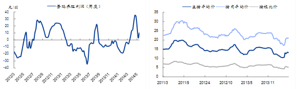 据部分种鸡场反映,2013年下半年养殖户补栏积极性较差,该状况直到2014年3月份开始好转,持续的低补栏造成当前存栏处于偏低水平,即使3、4月份补栏转好,由于蛋鸡补栏后5个月才能形成有效供给,因此9月之前蛋鸡存栏将持续偏紧,因此后续蛋价仍有继续上涨的基础。