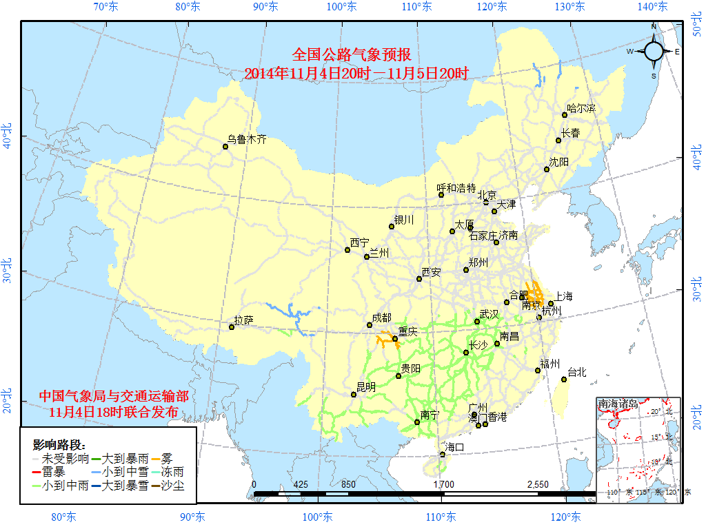 11月4日:全国主要公路气象预报
