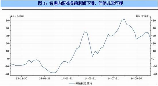 决定养殖户是否增加蛋鸡存栏量的因素是利润和风险,无疑今年鸡蛋高升,而食料等成本下降,鸡蛋利润已经非常可观。即便目前消费淡季和禽流感影响,现货价格有所回落,养殖利润有所下滑,但利润仍有25元/羽。但是由于连续两年冬春季受到禽流感的不利影响,根据走访发现,养殖户对蛋鸡补栏还是趋于谨慎。