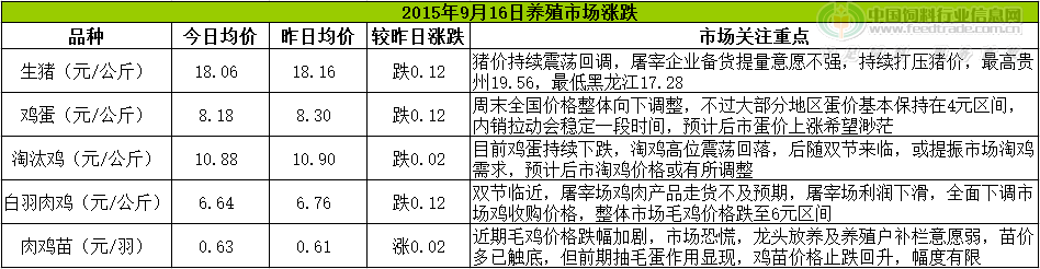 猪价持续震荡回调,屠宰企业备货提量意愿不强,持续打压猪价,最高贵州19.56,最低黑龙江17.28。周末全国价格整体向下调整,不过大部分地区蛋价基本保持在4元区间,内销拉动会稳定一段时间,预计后市蛋价上涨希望渺茫。目前鸡蛋持续下跌,淘鸡高位震荡回落,后随双节来临,或提振市场淘鸡需求,预计后市淘鸡价格或有所调整。双节临近,屠宰场鸡肉产品走货不及预期,屠宰场利润下滑,全面下调市场鸡收购价格,整体市场毛鸡价格跌至6元区间。近期毛鸡价格跌幅加剧,市场恐慌,龙头放养及养殖户补栏意愿弱,苗价多已触底,但前期抽毛蛋作用显现,鸡苗价格止跌回升,幅度有限。