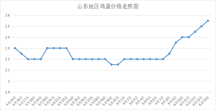 鸡病专业网消息:6月14日,山东地区莱阳鸡蛋2.55元/斤,涨;枣庄鸡蛋2.45元/斤,涨;莒南鸡蛋2.35元/斤,涨;临沭鸡蛋2.4元/斤,涨;沂南鸡蛋2.35元/斤,涨;沂水鸡蛋2.35元/斤,涨;日照鸡蛋2.35元/斤,涨;曹县鸡蛋69元/30斤,涨;威海鸡蛋2.5-2.55元/斤,涨;梁山鸡蛋110元/45斤,涨;诸城鸡蛋2.5元/斤,涨;泗水鸡蛋110元/45斤,涨;莱芜鸡蛋110元/45斤,涨;滨州鸡蛋94元/40斤,涨;夏津鸡蛋110元/45斤,涨;平原鸡蛋110元/45斤,涨;章丘鸡蛋110元/45斤,涨;济阳鸡蛋112元/45斤,涨;青岛鸡蛋2.7元/斤,涨;商河鸡蛋110元/45斤,涨;定陶鸡蛋108元/45斤,涨;单县鸡蛋70元/45斤,涨。