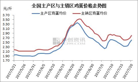 4-5月份蛋鸡养殖亏损严重,养殖单位积极淘汰老鸡,400日龄以上蛋鸡基本淘汰殆尽。同时各地温度普遍高温,蛋鸡进入“歇伏期”,产蛋率明显下降,大码鸡蛋货源供应明显减少。养殖单位惜售心理渐起,经销商低价收购略难,部分地区出现抢货现象,蛋价进入上涨阶段。6月1-21日鸡蛋均价由1.94元/斤涨至3.30元/斤,涨幅高达70.10%。之后由于蛋价涨势过快,终端环节抵触情绪明显,各地内销不畅,外销受阻,经销商出货压力加大。同时周边产区蛋价大幅走低,加大了养殖单位恐慌心理,积极清理库存,造成市场货源积压,蛋价进入下跌阶段。6月23-30日鸡蛋均价由3.40元/斤跌至2.56元/斤,跌幅24.71%。7月月初各环节存货逐渐清空,加上南方地区陆续出梅,贸易商采购积极性提高,蛋价止跌回涨。但蛋价涨幅过快,终端环节接受能力有限,同时各地普遍高温,鸡蛋存储周期缩短,贸易商为降低风险,采购量缩减,蛋价承压下跌。