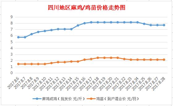鸡病专业网消息:2017年8月28日四川地区麻鸡价格行情最新走势