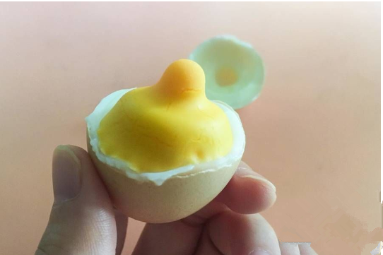 剥开蛋壳,惊喜却出现了。蛋黄像极了奶嘴,看上去很可爱。家里老人说,活了这么多年也没见过这么奇特造型的蛋黄。