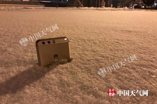 昨天清晨,陕西咸阳国际机场积雪较厚,将手机插入雪中,目测积雪超过5厘米。