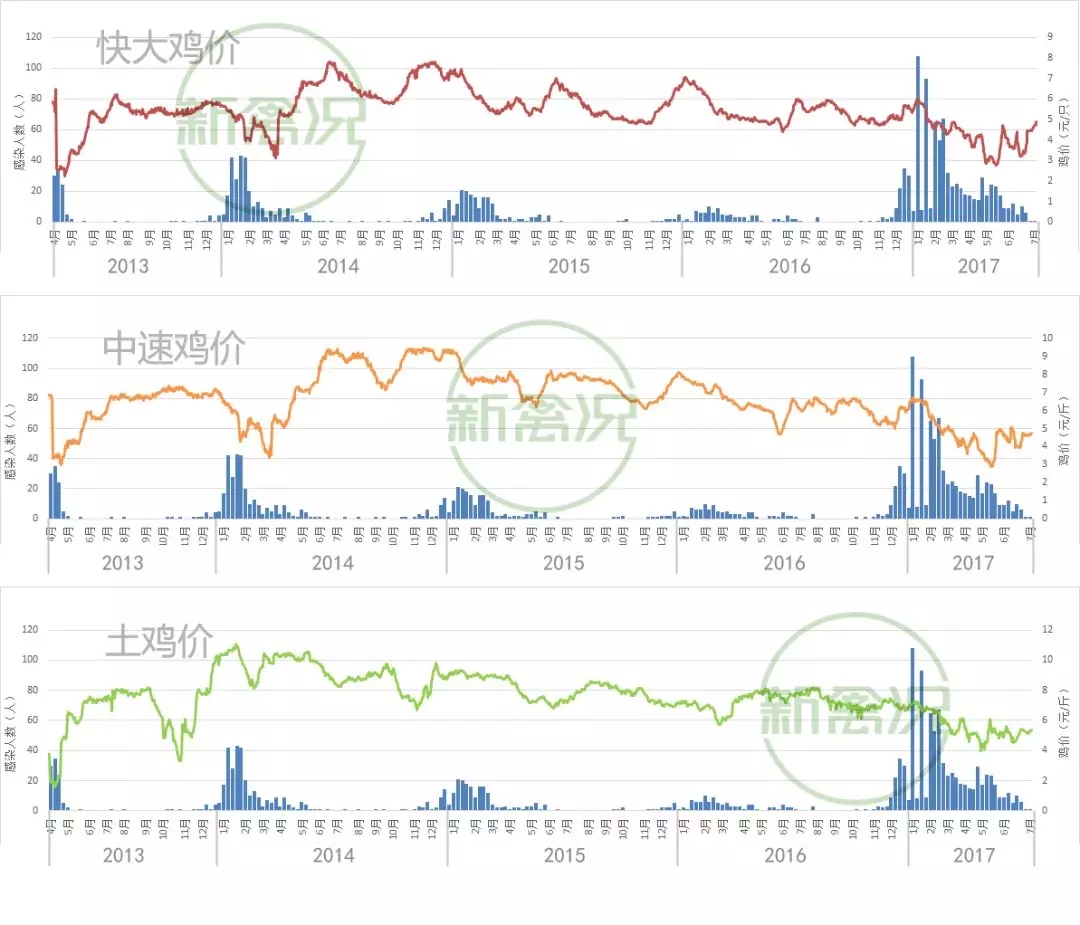 统计了自2013年4月以来国鸡价格与人感染H7N9病例的相关性。