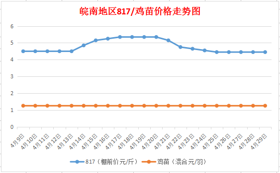 皖南地区817/鸡苗价格走势图(图表来源:鸡病专业网)