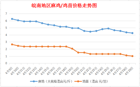 鸡病专业网消息:2018年4月29日-30日皖南地区817-麻鸡行情最新走势