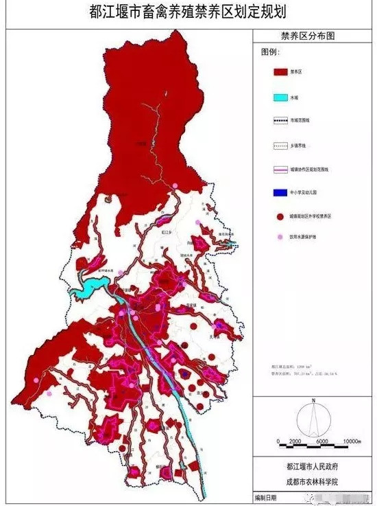 8月30日下午,《都江堰市人民政府办公室关于印发都江堰市畜禽禁止养殖区划定方案的通知》正式印发,禁养区范围如下,约有半数的地区禁止养殖。