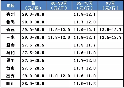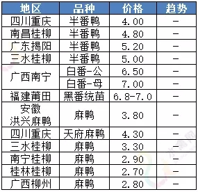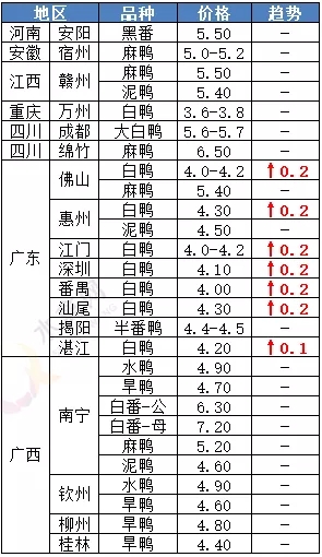 | 广西 | 南宁(水鸭) | 4.90 | - |