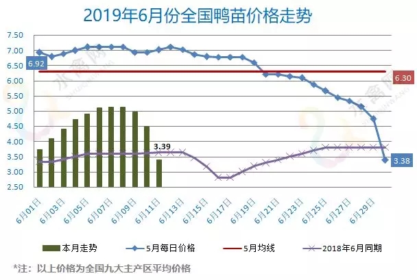 最新行情:明日上游端鸭苗、种蛋行情直线狂降、闪退雪崩,各区域品牌孵化厂家报价下调暴跌1.0-1.5元/羽不等。出苗量渐增,供需背离,加之中小厂为走量、实发价格与品牌厂差异较大,种种因素都加剧了价格的失真、失衡与急速下行。全国监测区域鸭苗成交均价3.39元/羽,较去年6月同期下跌0.10元/羽,跌幅2.9%,环比5月下跌2.91元/羽。