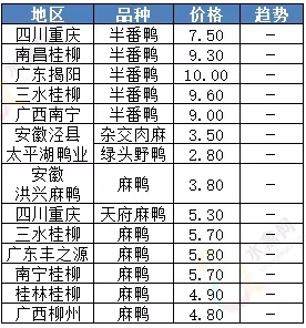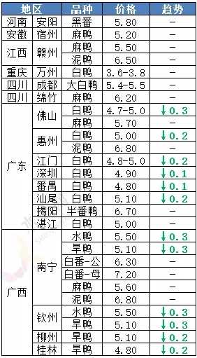 | 广西 | 南宁(水鸭) | 5.50 | -0.30 |