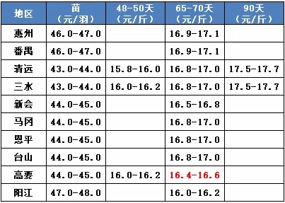 | 广西 | 南宁(水鸭) | 6.00 | - |