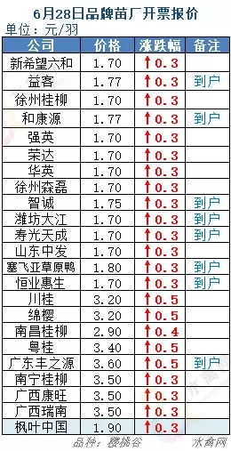 近期价格波动频繁、震幅较大,各地市场出现一定程度乱象、价格混乱,以上报价仅供业内参考,部分中小苗厂实发价格有所浮动,以实际议定为准。