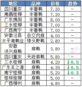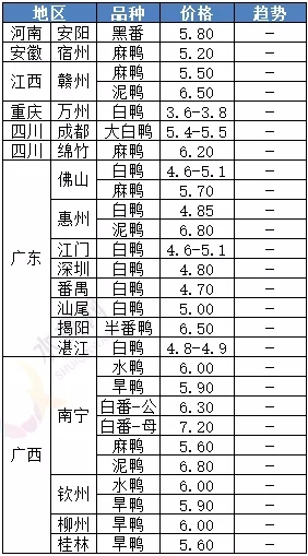 | 广西 | 南宁(水鸭) | 6.00 | - |