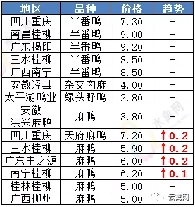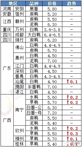 | 广西 | 南宁(水鸭) | 5.60 | 0.20 |