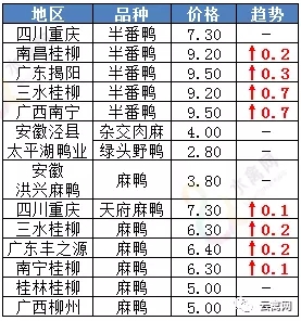 提示:以上为信息人员收集,红色代表上涨、绿色代表下跌;不同地区鹅场有一定差异,价格仅供参考!