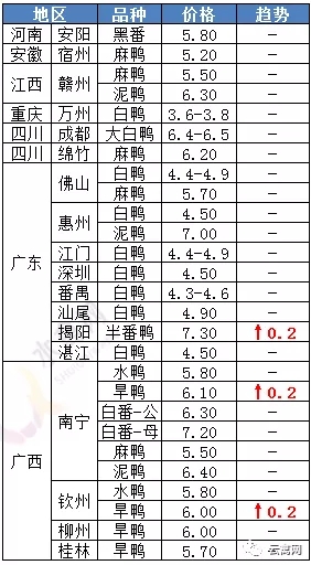 | 广西 | 南宁(水鸭) | 5.80 | - |