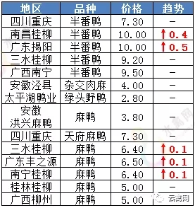 提示:以上为信息人员收集,红色代表上涨、绿色代表下跌;不同地区鹅场有一定差异,价格仅供参考!