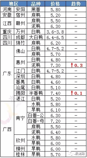 | 广西 | 南宁(水鸭) | 5.80 | - |
