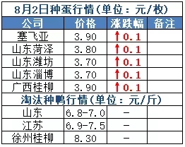 8月1日全国商品鸭出栏价格南稳北涨,零星涨跌。正值三伏酷暑,全国连续多日出现大范围高温天气,近期河北、河南、江苏、安徽、浙江等省份地区的最高温度均达到了38℃左右,高温桑拿天气横行,一线的防暑降温进入攻坚阶段。北方鲁豫皖苏地区市场以分割冻品走货为主,量产量销,近期随着生猪价格的强势上涨,鸭产品亦有所上扬。原料方面,鲁中部分地区大鸭的收购价已经上浮至4元/斤。