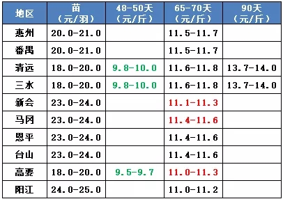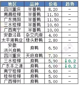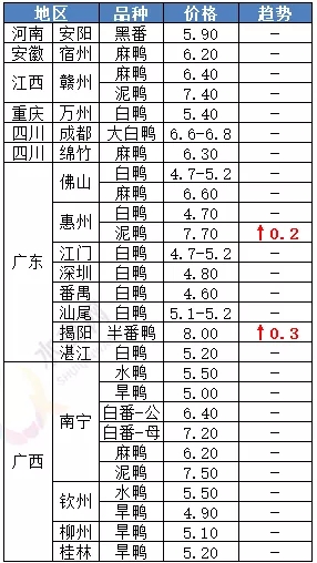 | 广西 | 南宁(水鸭) | 5.50 | - |