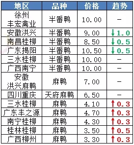 | 广西 | 南宁(水鸭) | 5.50 | -0.10 |