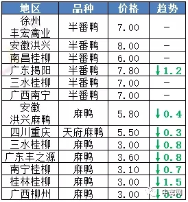 提示:以上为信息人员收集,红色代表上涨、绿色代表下跌;不同地区鹅场有一定差异,价格仅供参考!