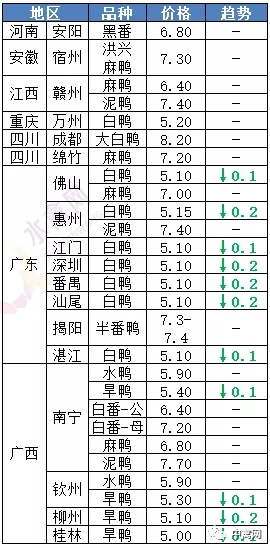 | 广西 | 南宁(水鸭) | 5.90 | - |