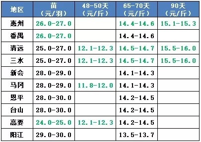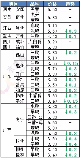 | 广西 | 南宁(水鸭) | 3.80 | -0.40 |
