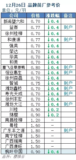 提示:以上为信息人员收集,红色代表上涨、绿色代表下跌;不同地区鹅场有一定差异,价格仅供参考!