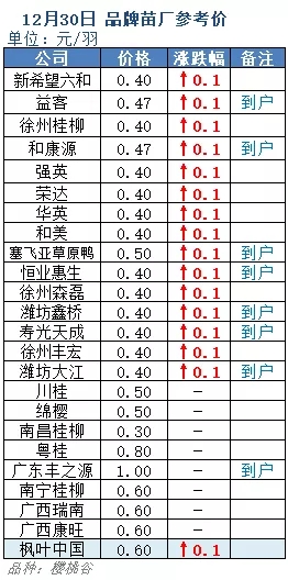 提示:以上为信息人员收集,红色代表上涨、绿色代表下跌;不同地区鹅场有一定差异,价格仅供参考!