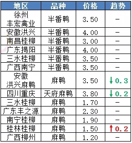 | 广西 | 南宁(水鸭) | 3.10 | - |