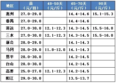 4、华中华南活禽区域行情速览