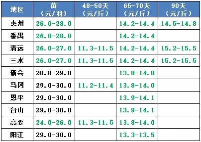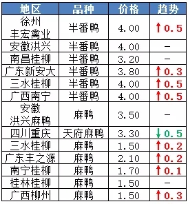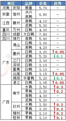 | 广西 | 南宁(水鸭) | 3.50 | 0.30 |