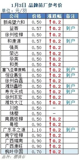 提示:以上为信息人员收集,红色代表上涨、绿色代表下跌;不同地区鹅场有一定差异,价格仅供参考!