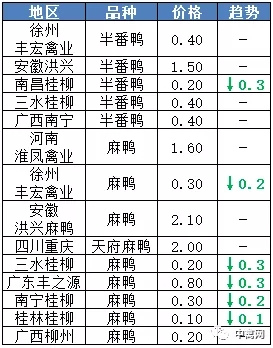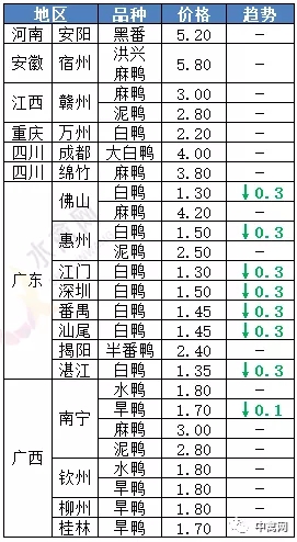 | 广西 | 南宁(水鸭) | 1.80 | - |