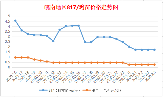 皖南地区817/鸡苗价格走势图(图表来源:鸡病专业网)