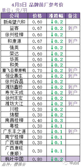 全线尽墨,毛苗探底--4月3日毛鸭、鸭苗行情