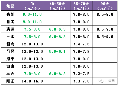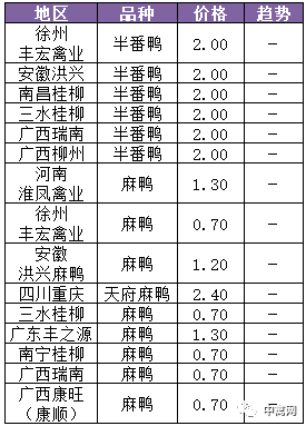 | 广西 | 南宁(水鸭) | 3.70 | -0.30 |