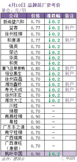 支撑乏力,北苗转跌--4月10日毛鸭、鸭苗行情