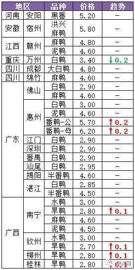 | 广西 | 南宁(水鸭) | 3.00 | - |